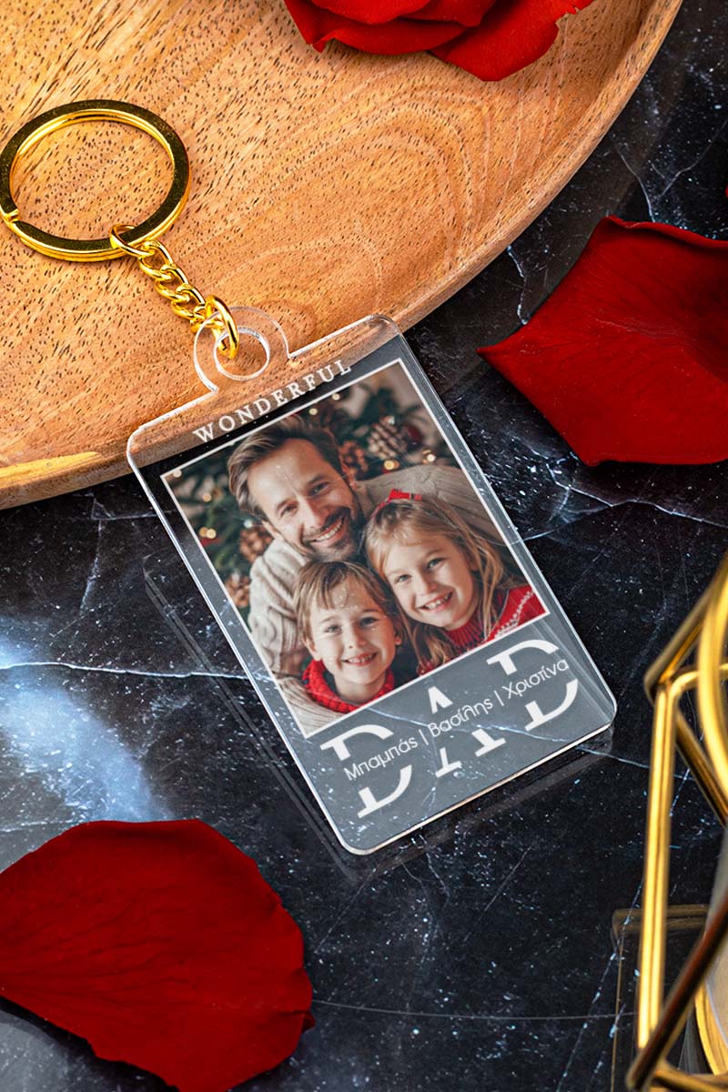 Προσωποποιημένο μπρελόκ, με φωτογραφία, ονόματα και αφιέρωση. Μοναδικό δώρο αγάπης για τη γιορτή του πατέρα!