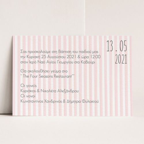 Προσκαλέστε επίσημα τους φίλους, την οικογένεια και τους αγαπημένους σας στο μυστήριο της Βάπτισης του αγοριού σας ή του κοριτσιού σας με το ομορφότερο προσκλητήριο Βάπτισης! Είτε πρόκειται για μια vintage ή ρομαντική Βάπτιση στην Αθήνα, είτε για μια πρωτότυπη Βάπτιση στη Θεσσαλονίκη, θα δημιουργήσετε μια μοναδική πρόσκληση ακριβώς όπως την έχετε ονειρευτεί