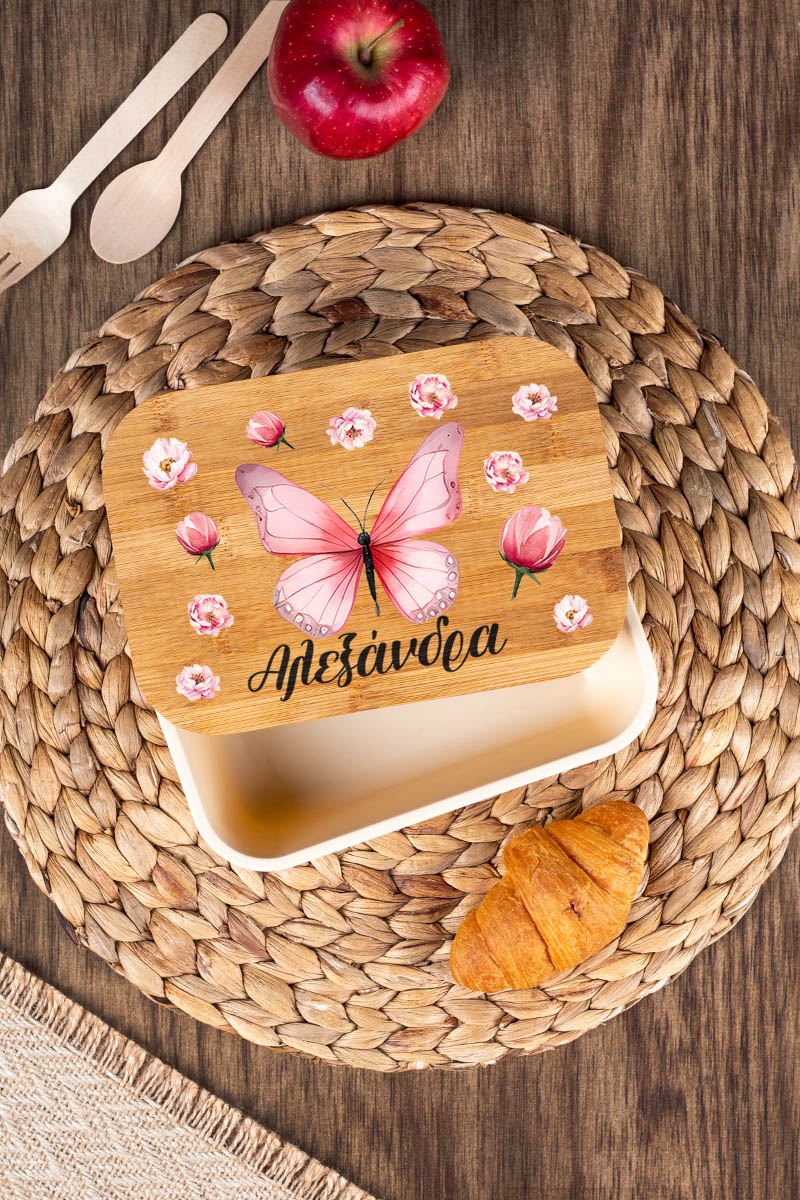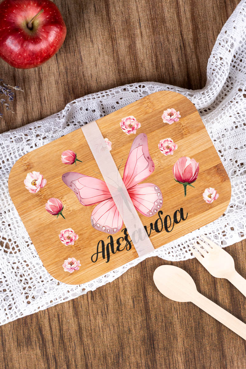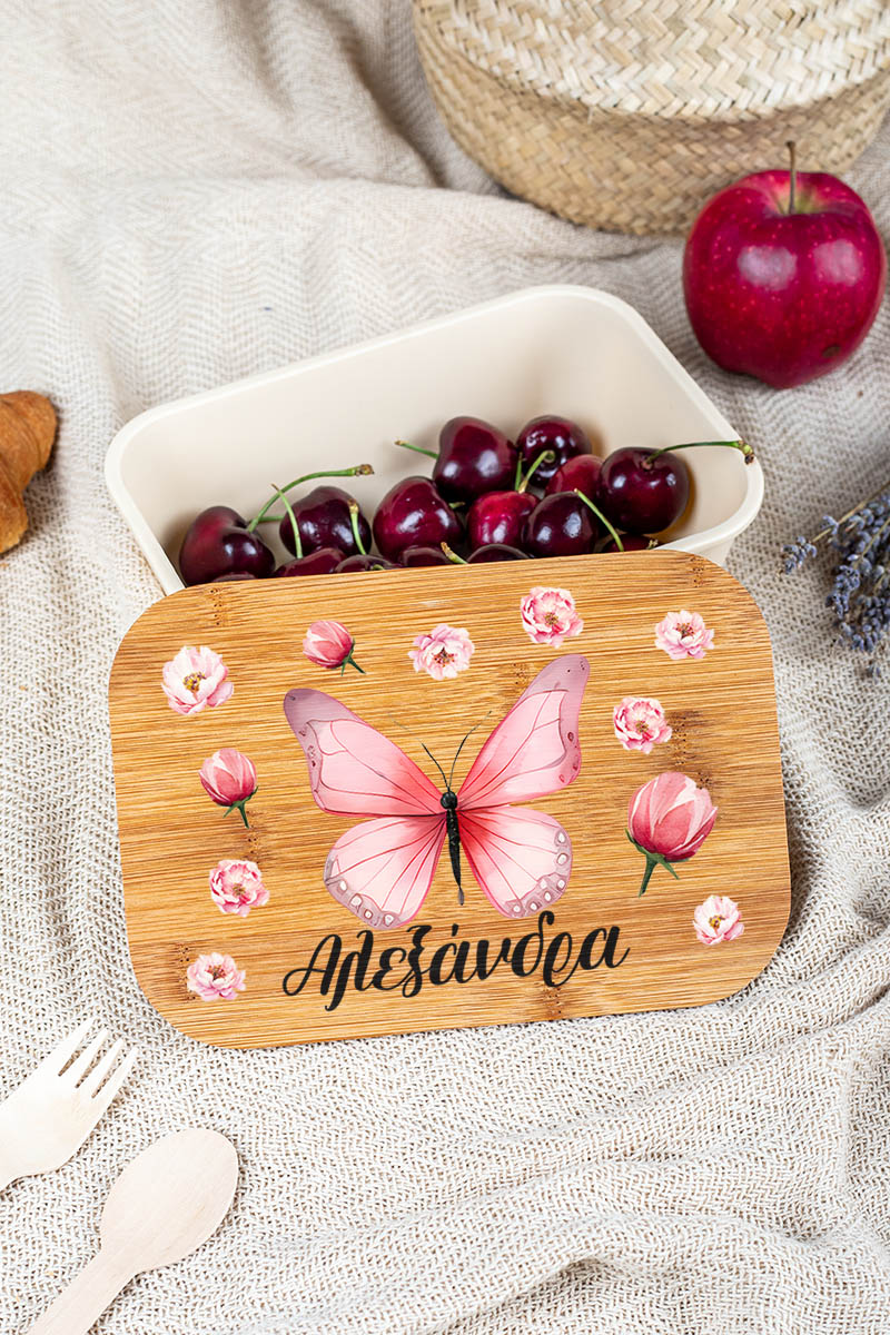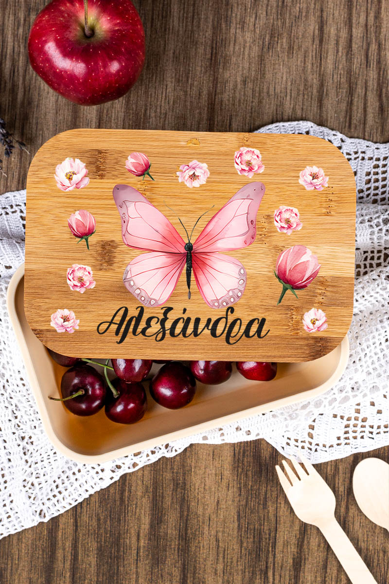 Παιδικό Δοχείο Φαγητού με το Όνομα του Παιδιού, Flowers And Fly