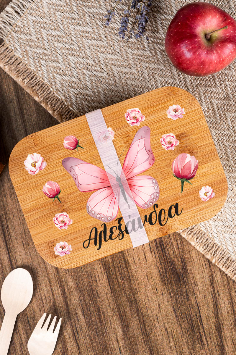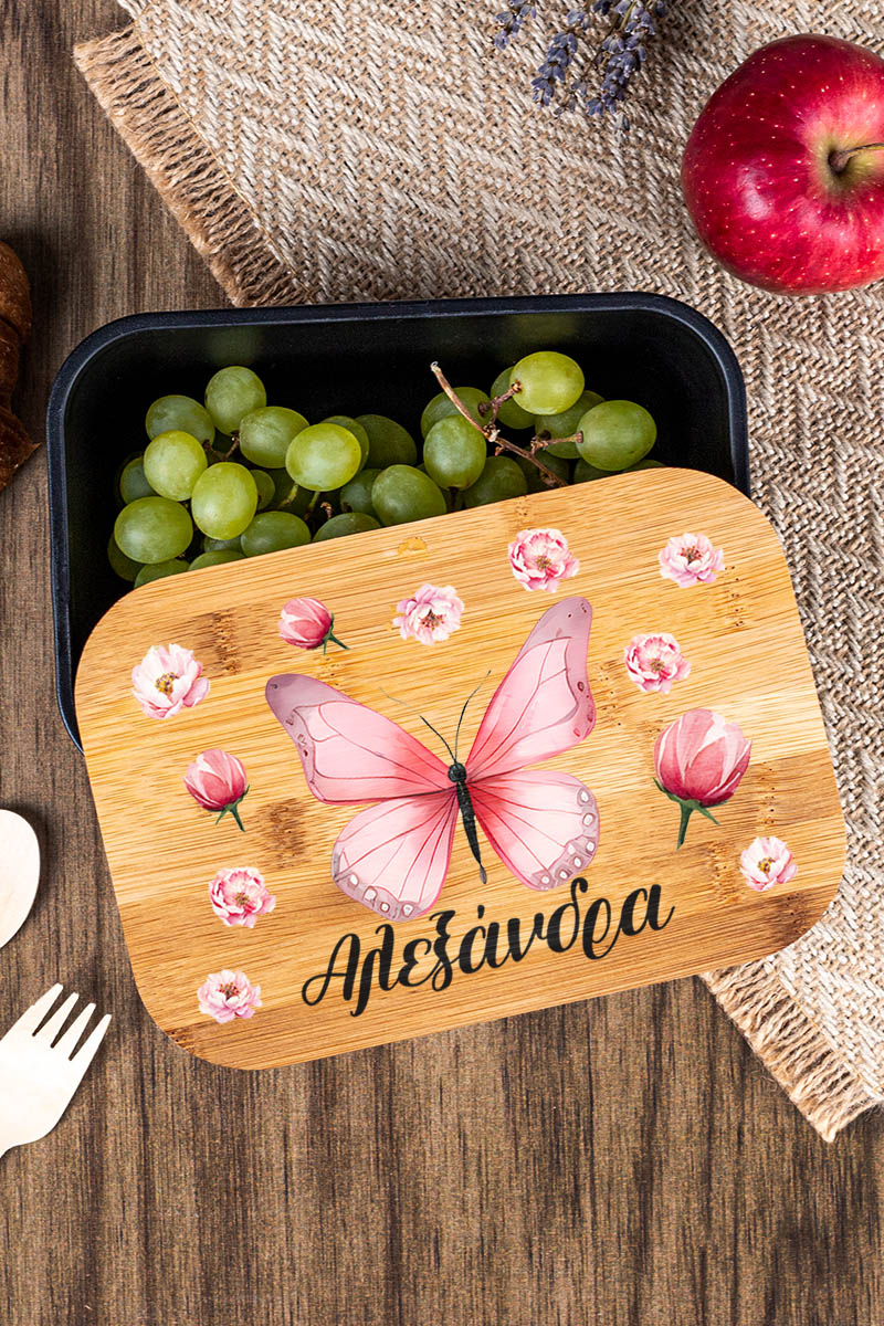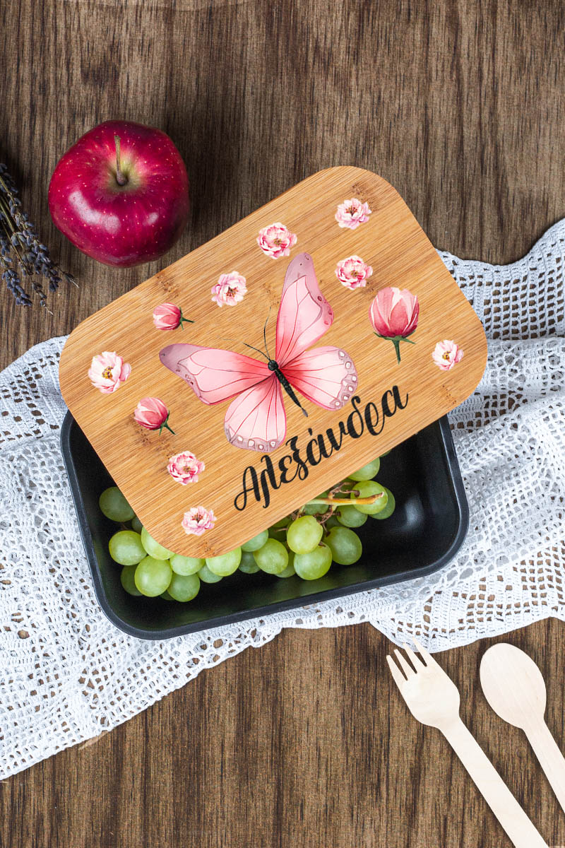Παιδικό Δοχείο Φαγητού με το Όνομα του Παιδιού, Flowers And Fly
