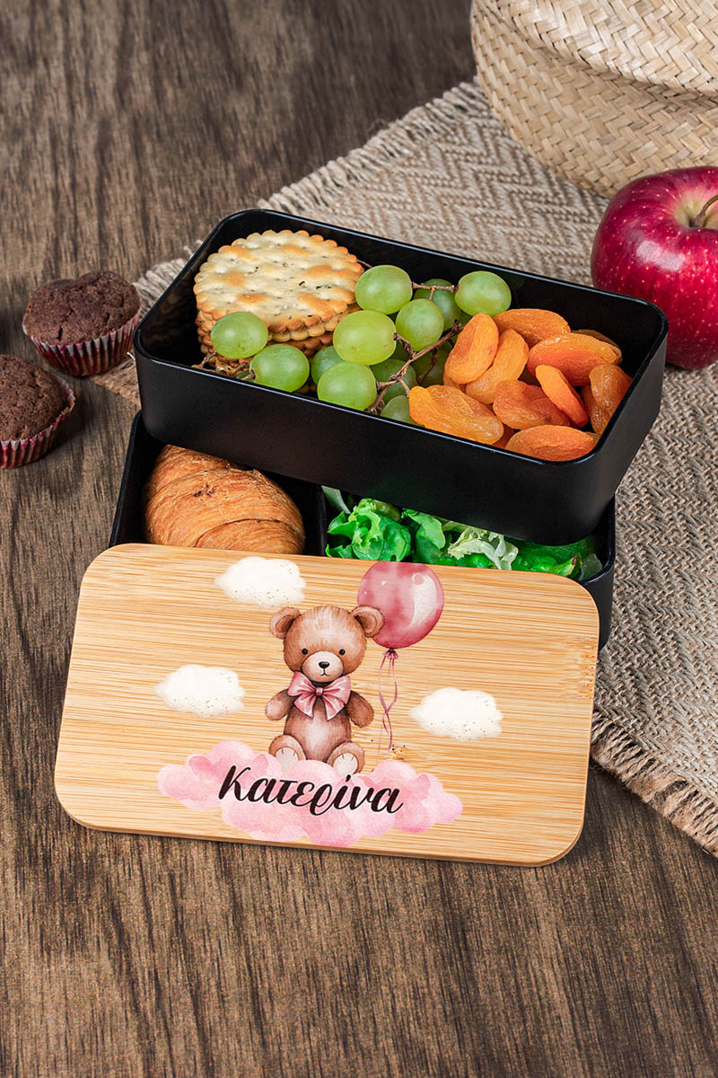 Παιδικό δοχείο φαγητού υψηλής ποιότητας, με 2 επιπέδα & εκτυπωμένο το όνομα του παιδιού ώστε να το ξεχωρίζει στο σχολείο!