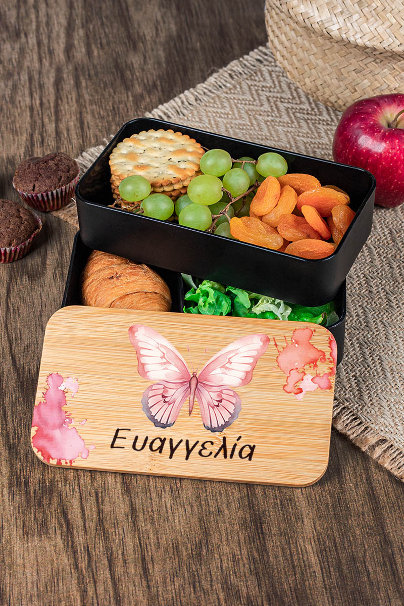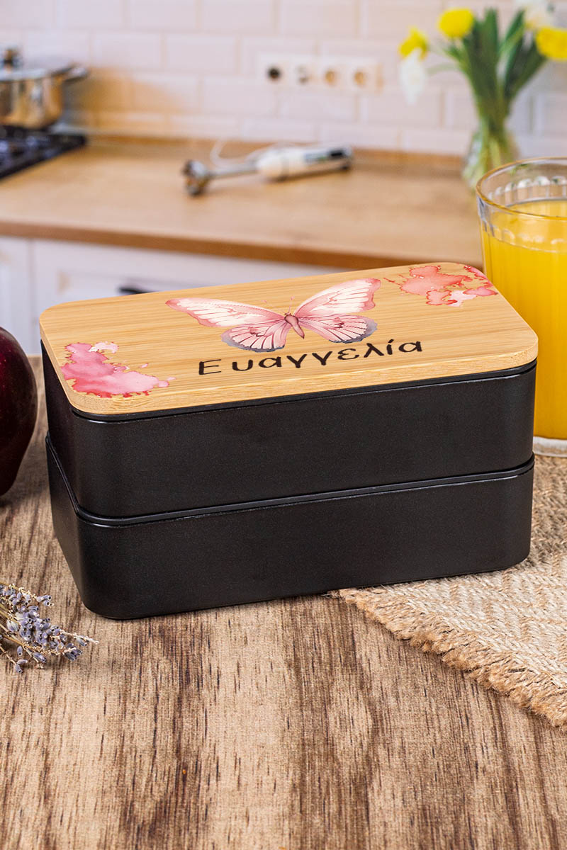 Παιδικό δοχείο φαγητού υψηλής ποιότητας, με 2 επιπέδα & εκτυπωμένο το όνομα του παιδιού ώστε να το ξεχωρίζει στο σχολείο!