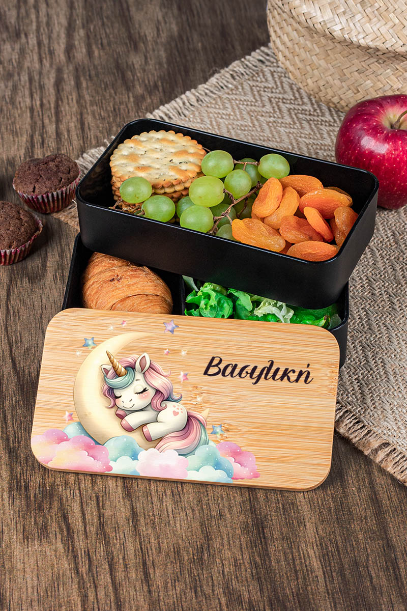 Παιδικό δοχείο φαγητού υψηλής ποιότητας, με 2 επιπέδα & εκτυπωμένο το όνομα του παιδιού ώστε να το ξεχωρίζει στο σχολείο!