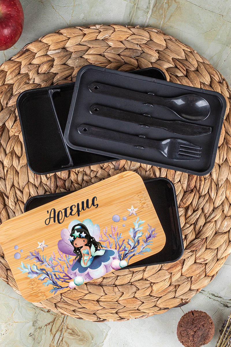 Παιδικό δοχείο φαγητού 2 επιπέδων με μαχαιροπήρουνα & καπάκι από μπαμπού!
