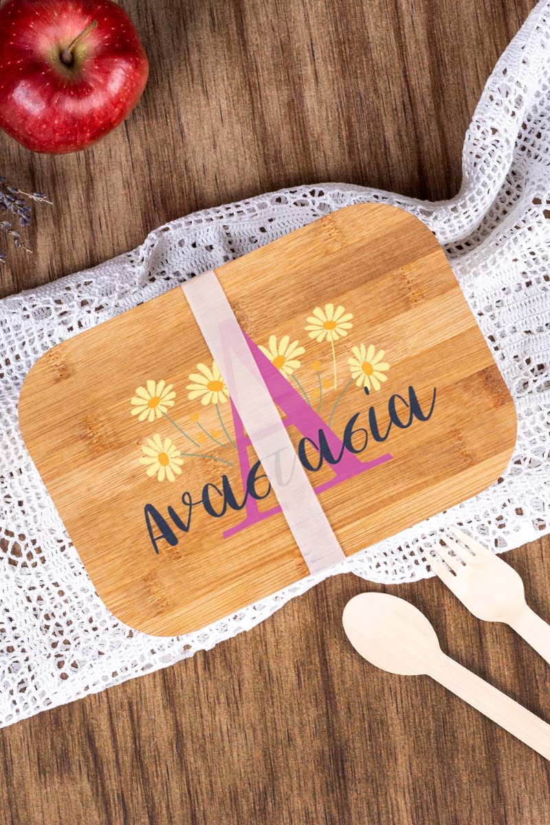 Παιδικό Δοχείο Φαγητού με το Όνομα του Παιδιού, Yellow Daisies