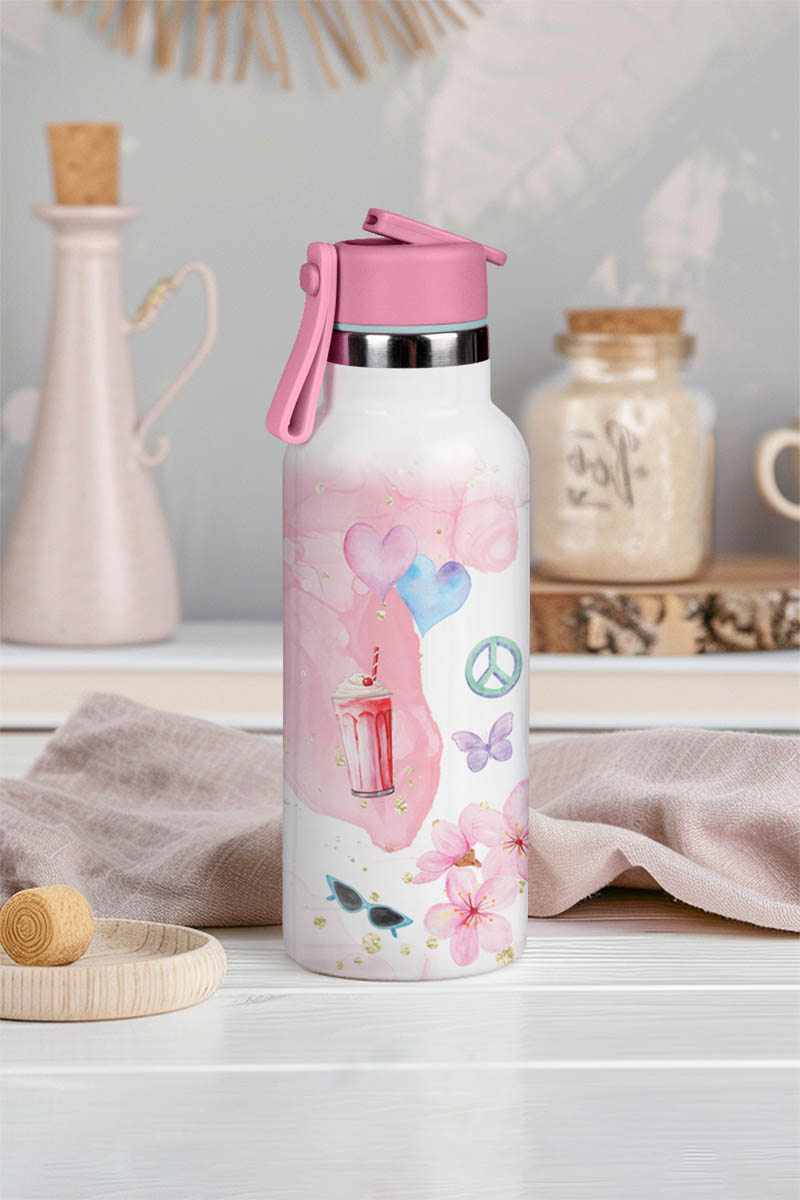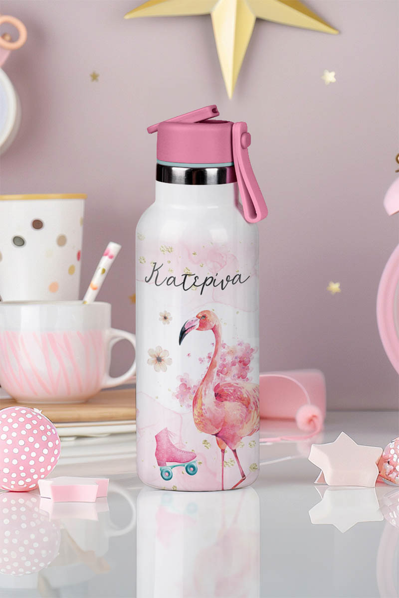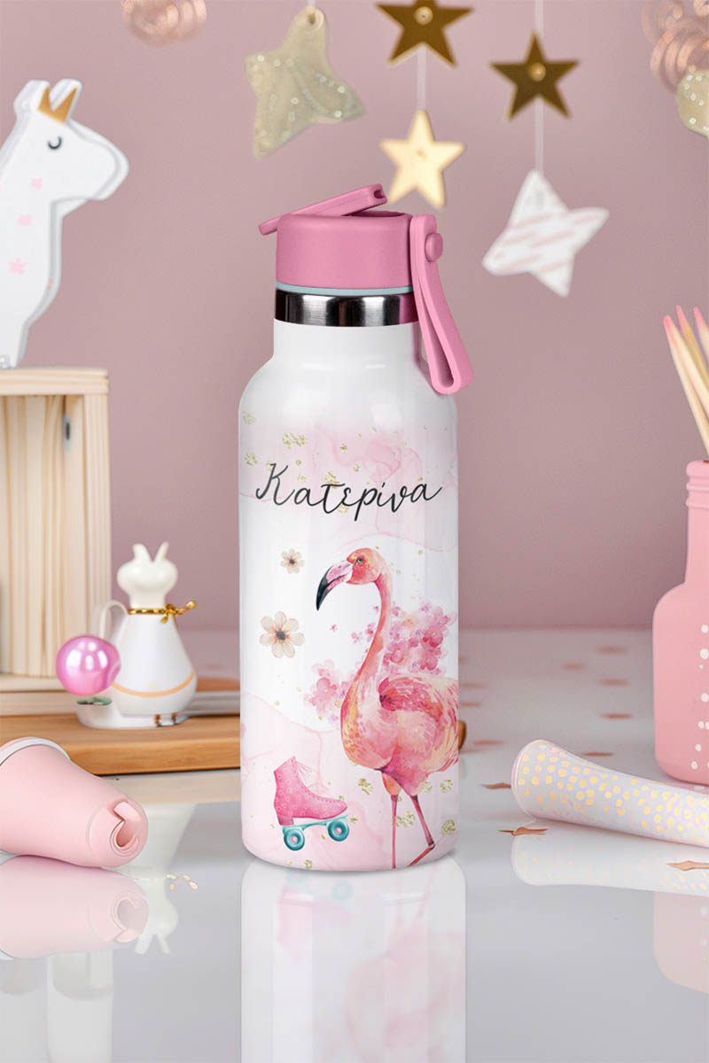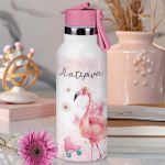Παιδικό Παγούρι Θερμός με Όνομα & Καλαμάκι, Flamingo Peace