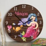 Παιδικό Ρολόι Τοίχου Ξύλινο για Κορίτσι με Σχέδιο Ωκεανός