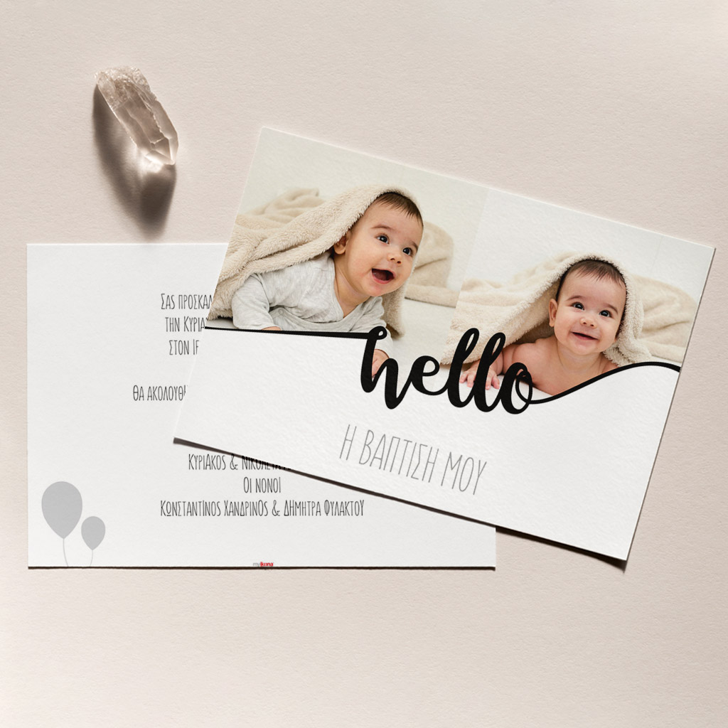 Αποκτήστε τα προσκλητήρια γάμου και βάπτισης με σχέδιο Minimal Φύλλα. Οι πελάτες μας τα ξεχωρίζουν για το υψηλής ποιότητας ιταλικό χαρτί και την εκτύπωση υψηλής ευκρίνειας Myikona High Definition. Διαθέσιμα σε διαφορετικές διαστάσεις.