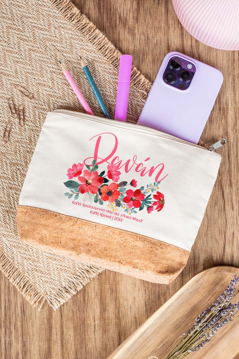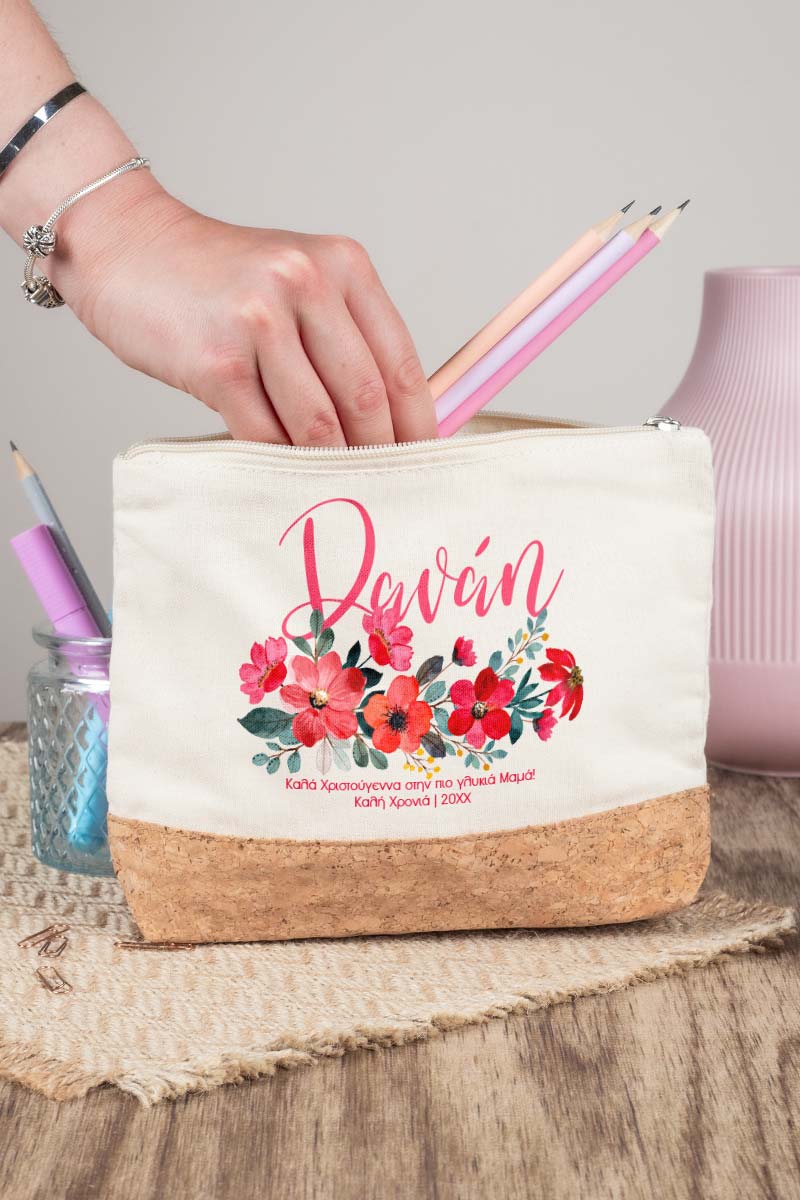 Είναι το τέλειο αξεσουάρ για την οργάνωση των καλλυντικών και άλλων καθημερινών αντικειμένων. Είναι σχεδιασμένο με πρακτικότητα και στυλ, προσφέροντας άνεση και ευκολία στις μετακινήσεις σας. Το τσαντάκι αυτό δεν είναι μόνο χρήσιμο, αλλά και μοναδικό, καθώς μπορεί να προσωποποιηθεί με ονόματα ή αφιερώσεις, προσδίδοντας μια προσωπική πινελιά.