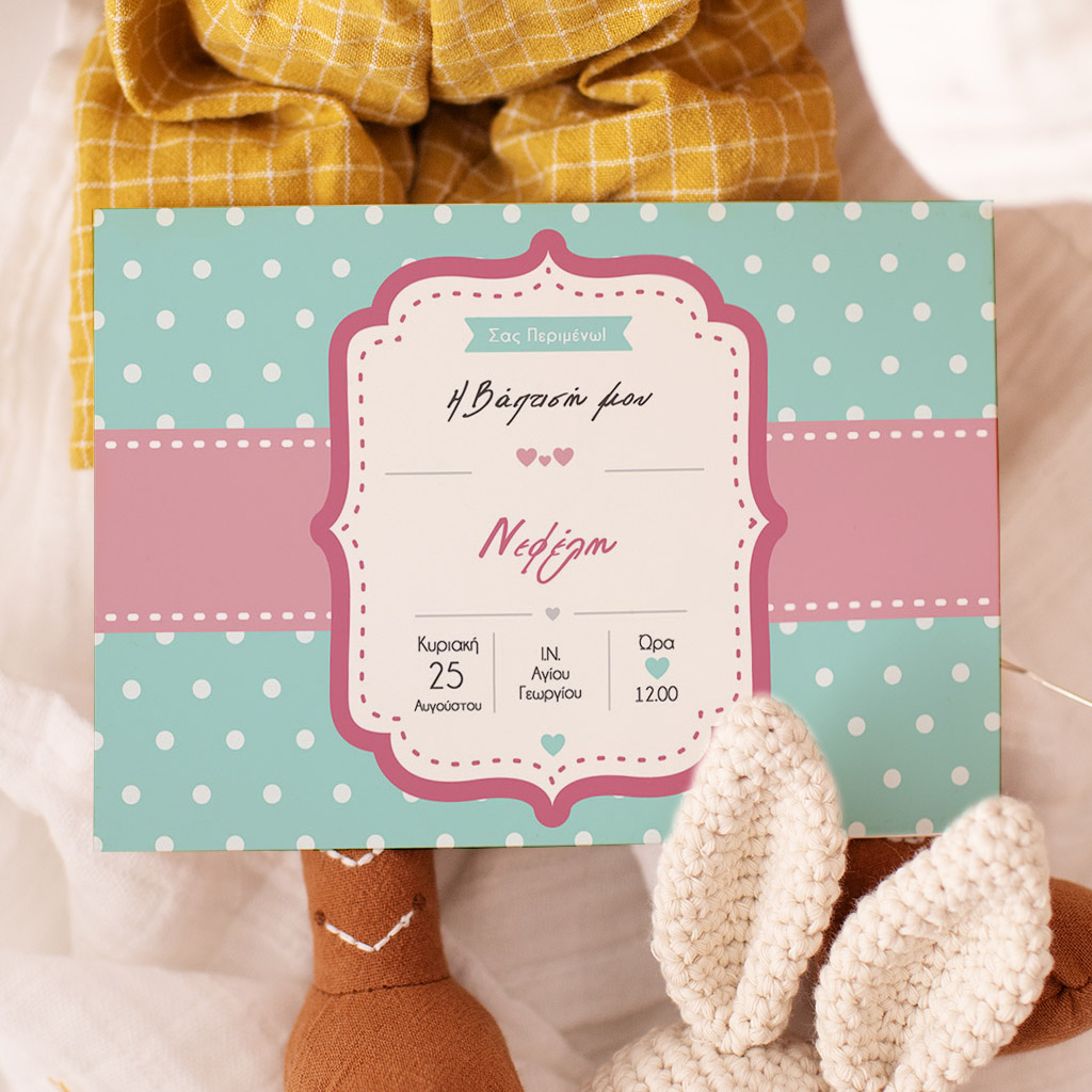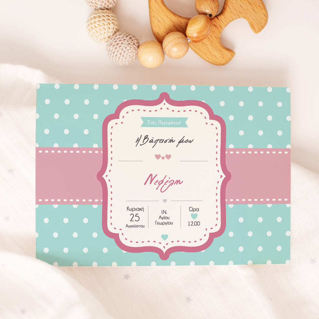 Με εξαιρετικές τιμές, υψηλή αισθητική και κορυφαία τεχνολογία εκτύπωσης, τα προσκλητήριά μας εγγυώνται ότι η πρόσκληση της βάπτισής σας θα αφήσει ένα ανεξίτηλο σημάδι στην καρδιά κάθε καλεσμένου.