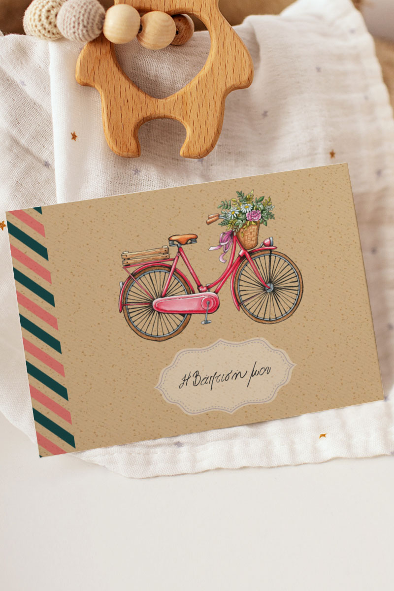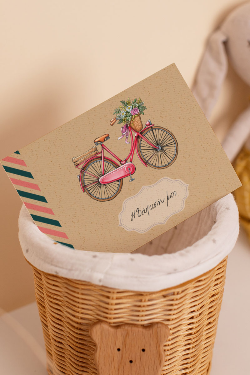 Αποκτήστε τα προσκλητήρια βάπτισης με σχέδιο Vintage Bike. Κατάλληλα για αγόρι ή κορίτσι, ξεχωρίζουν για το ανθεκτικό και ποιοτικό χαρτί τύπου Opalina και την εξαιρετική Myikona High Definition εκτύπωση. Δημιουργήστε εύκολα, γρήγορα και οικονομικά τα δικά σας προσκλητήρια!