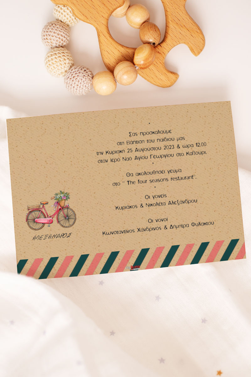 Προσκλητήρια Βάπτισης με σχέδιο Vintage Bike