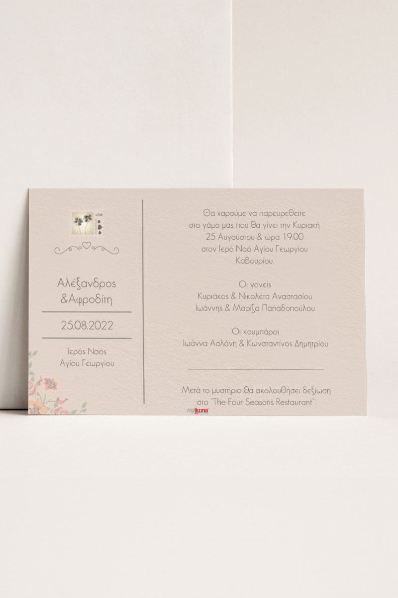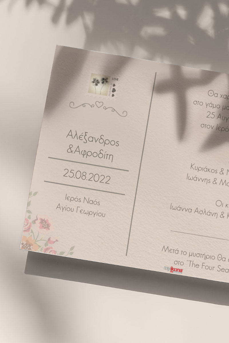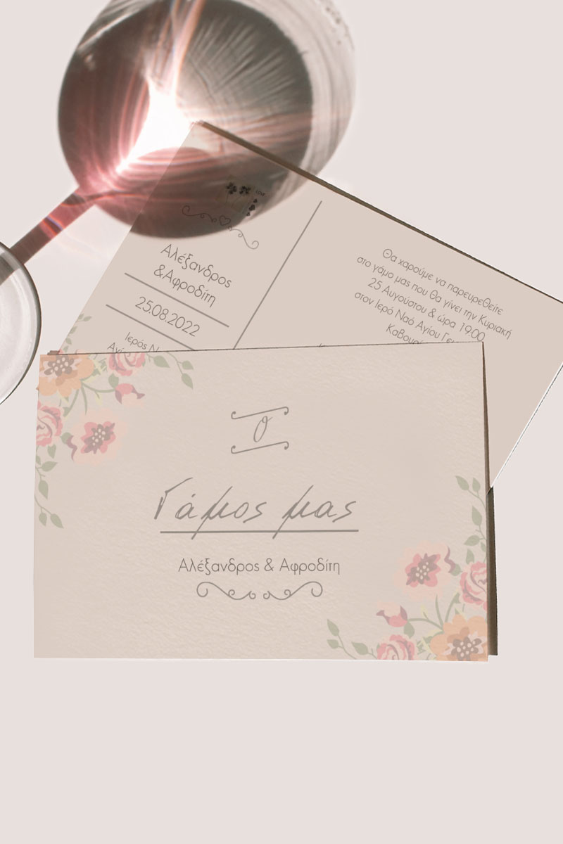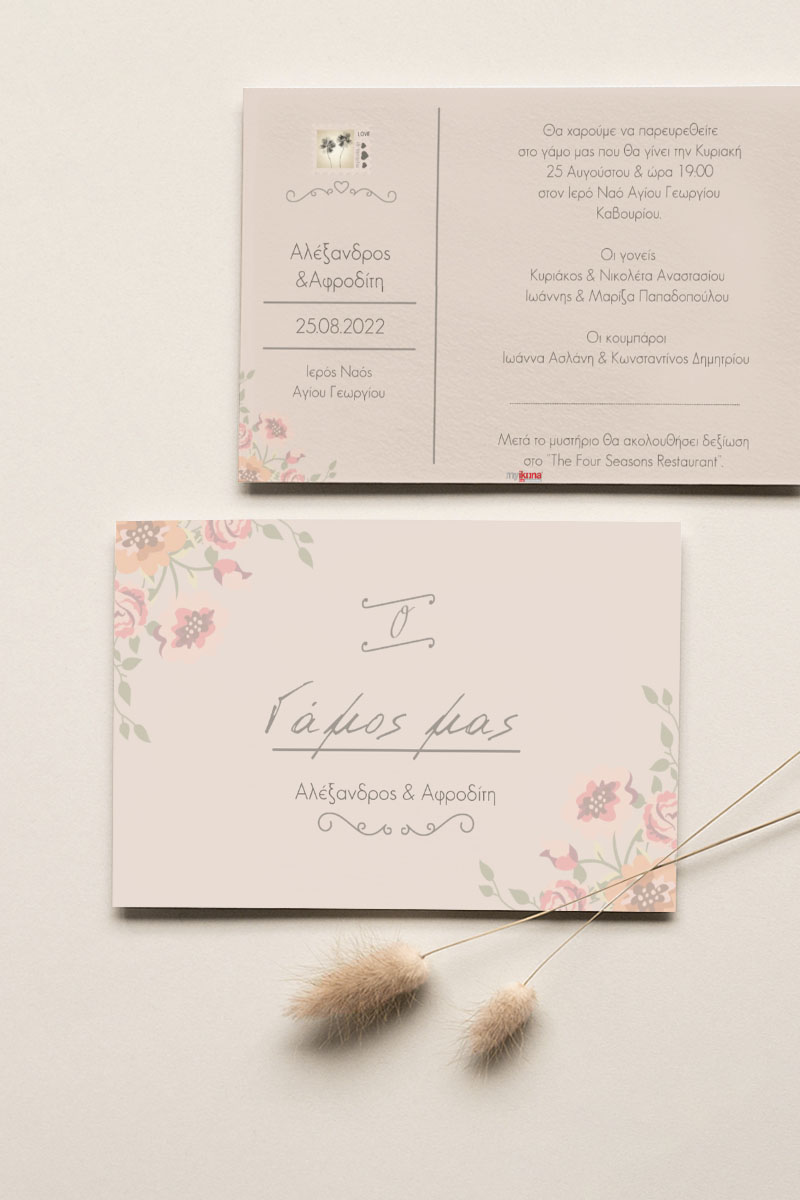 Αποκτήστε τα προσκλητήρια γάμου με σχέδιο Καλοκαιρινά Ροζ Άνθη. Οι πελάτες μας τα ξεχωρίζουν για το υψηλής ποιότητας ιταλικό χαρτί και την εκτύπωση υψηλής ευκρίνειας Myikona High Definition. Διαθέσιμα σε διαφορετικές διαστάσεις.