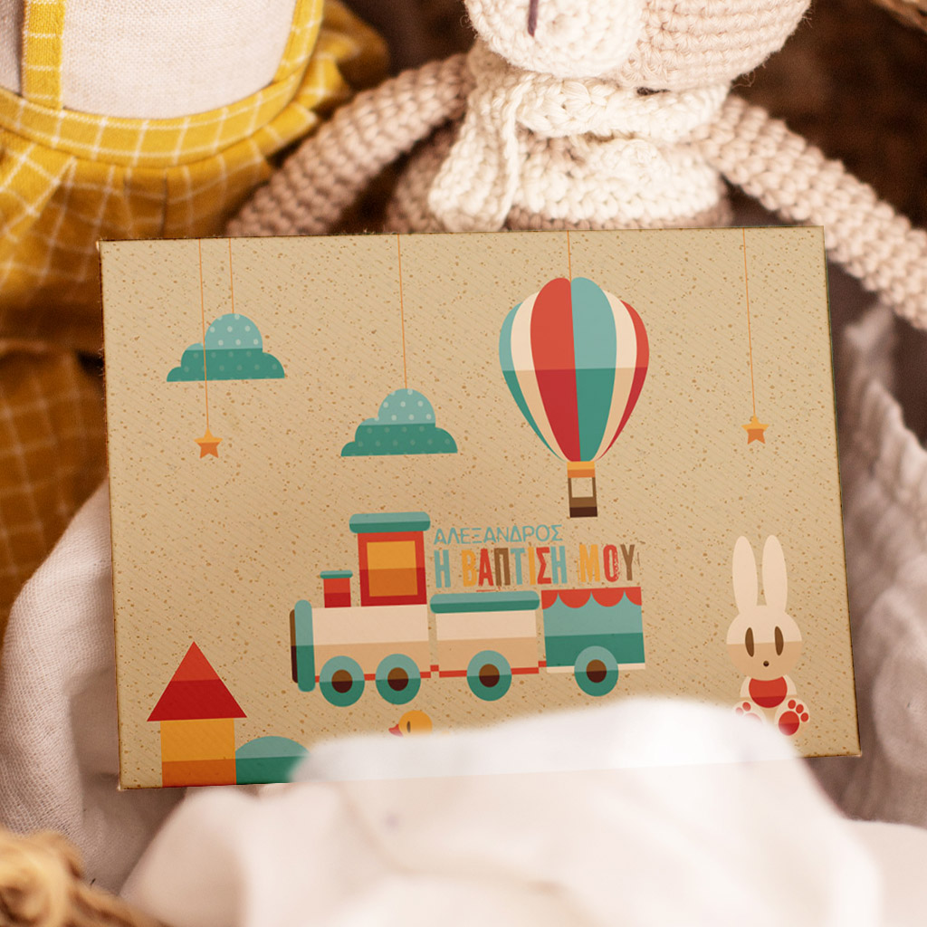 Αποκτήστε τα προσκλητήρια βάπτισης με σχέδιο Train. Κατάλληλα για αγόρι ή κορίτσι, ξεχωρίζουν για το ανθεκτικό και ποιοτικό χαρτί τύπου Opalina και την εξαιρετική Myikona High Definition εκτύπωση. Δημιουργήστε εύκολα, γρήγορα και οικονομικά τα δικά σας προσκλητήρια!