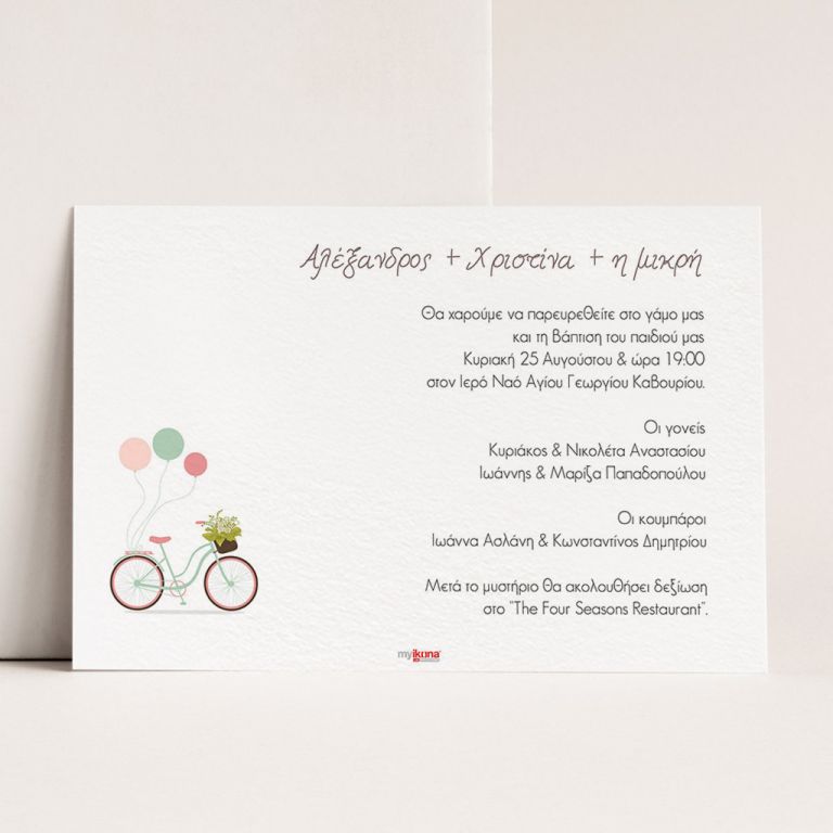 Αποκτήστε τα προσκλητήρια γάμου με σχέδιο Minimal Elegance. Οι πελάτες μας τα ξεχωρίζουν για το υψηλής ποιότητας ιταλικό χαρτί και την εκτύπωση υψηλής ευκρίνειας Myikona High Definition. Διαθέσιμα σε διαφορετικές διαστάσεις.