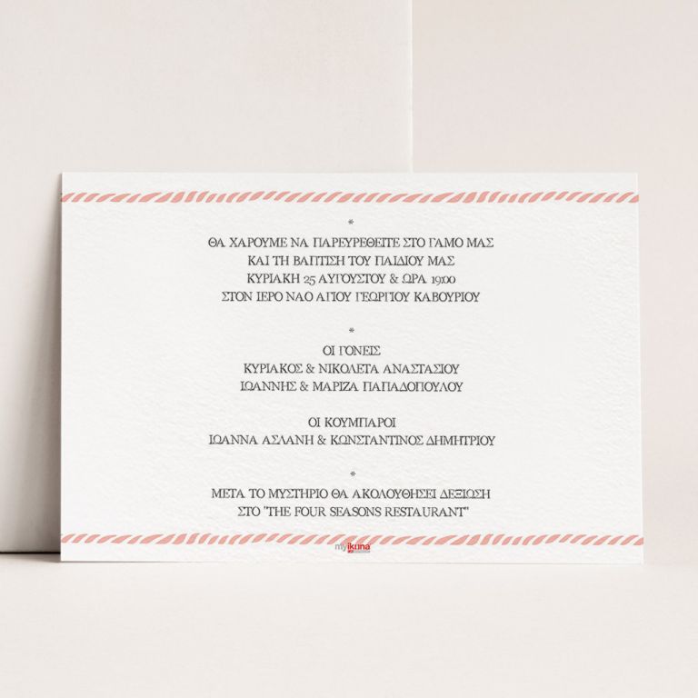 Δημιουργήστε ένα προσκλητήριο με τα στοιχεία σας και επιλέξτε ποσότητα 1 τεμαχίου, ώστε να το δημιουργήσουμε και να σας το αποστείλουμε πριν την τελική εκτύπωση με κόστος μόνο 9,95€.