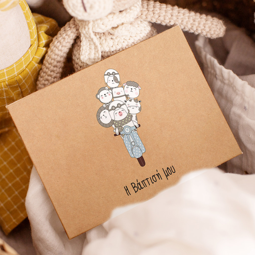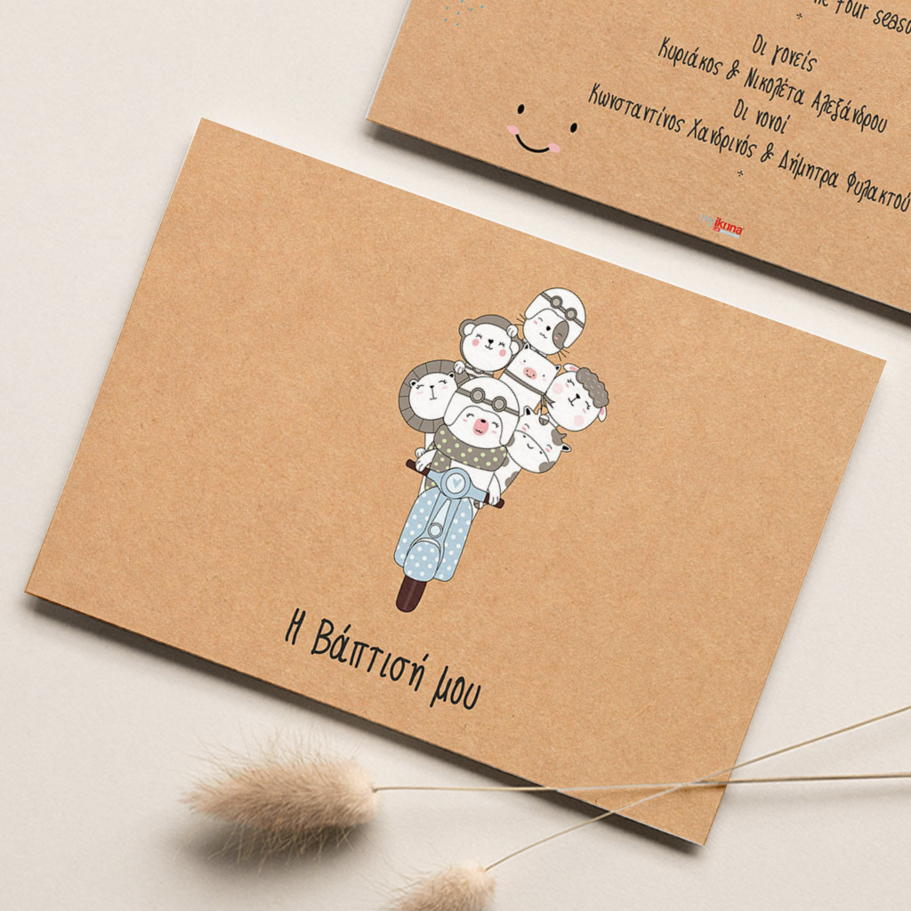 Κάθε λεπτομέρεια μετράει στην πιο όμορφη στιγμή της ζωής σας. Αυτό αντικατοπτρίζεται στα Προσκλητήρια Βάπτισης με σχέδιο Άγρια Ζωάκια, τα οποία χρησιμοποιούν υψηλής ποιότητας ιταλικό χαρτί και Myikona High Definition εκτύπωση. Διαθέσιμα σε διαφορετικές διαστάσεις.