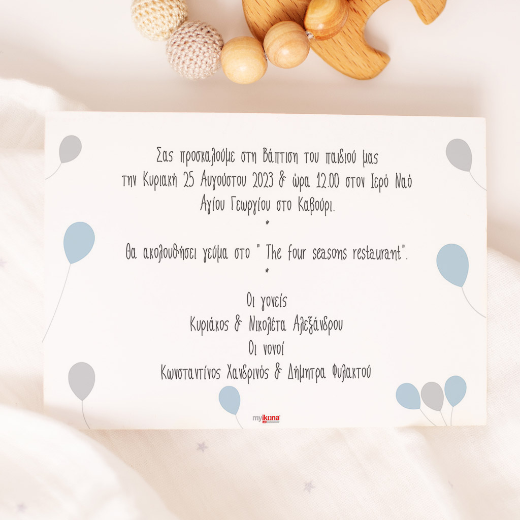 Κάθε λεπτομέρεια μετράει στην πιο όμορφη στιγμή της ζωής σας. Αυτό αντικατοπτρίζεται στα Προσκλητήρια Βάπτισης με σχέδιο Αρκουδάκι σε Γαλάζιο Ουρανό, τα οποία χρησιμοποιούν υψηλής ποιότητας ιταλικό χαρτί και Myikona High Definition εκτύπωση. Διαθέσιμα σε διαφορετικές διαστάσεις.