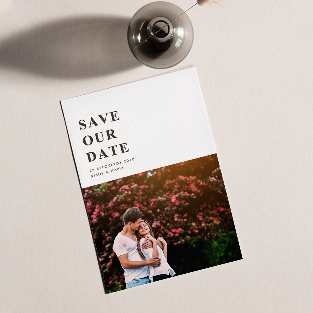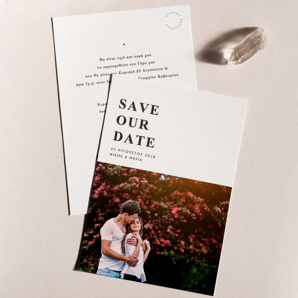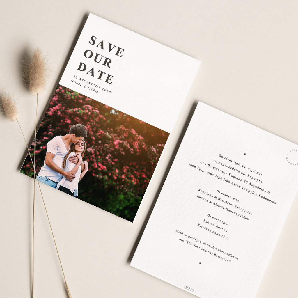 Αποκτήστε τα προσκλητήρια γάμου με σχέδιο Minimal Elegance. Οι πελάτες μας τα ξεχωρίζουν για το υψηλής ποιότητας ιταλικό χαρτί και την εκτύπωση υψηλής ευκρίνειας Myikona High Definition. Διαθέσιμα σε διαφορετικές διαστάσεις.