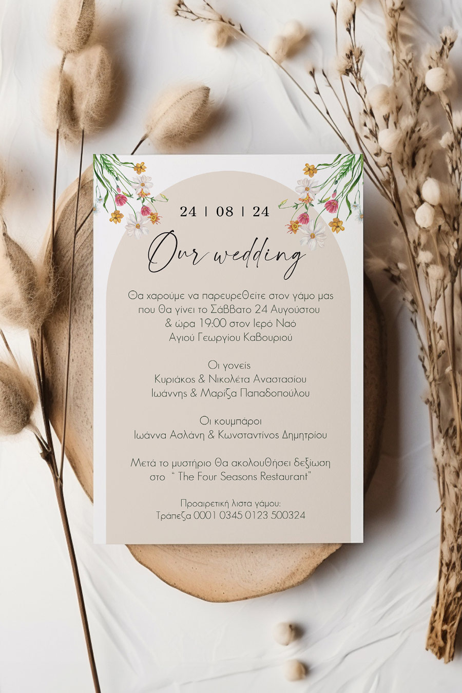 Αποκτήστε τα προσκλητήρια γάμου με σχέδιο Πολύχρωμα Λουλουδάκια. Οι πελάτες μας τα ξεχωρίζουν για το υψηλής ποιότητας ιταλικό χαρτί και την εκτύπωση υψηλής ευκρίνειας Myikona High Definition. Διαθέσιμα σε διαφορετικές διαστάσεις.