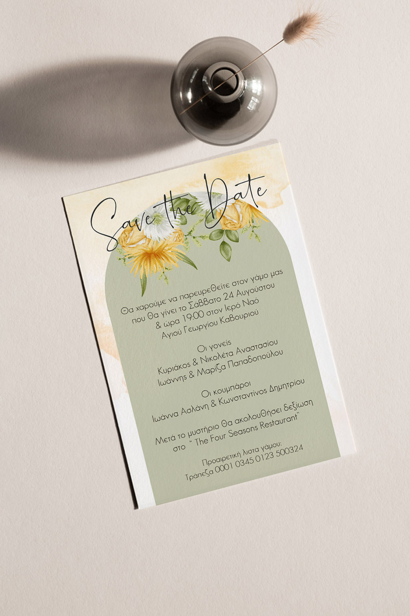 Αποκτήστε τα προσκλητήρια γάμου με σχέδιο Minimal Elegance. Οι πελάτες μας τα ξεχωρίζουν για το υψηλής ποιότητας ιταλικό χαρτί και την εκτύπωση υψηλής ευκρίνειας Myikona High Definition. Διαθέσιμα σε διαφορετικές διαστάσεις.
