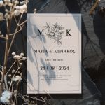 Αποκτήστε τα προσκλητήρια γάμου με σχέδιο Minimal Elegance. Οι πελάτες μας τα ξεχωρίζουν για το υψηλής ποιότητας ιταλικό χαρτί και την εκτύπωση υψηλής ευκρίνειας Myikona High Definition. Διαθέσιμα σε διαφορετικές διαστάσεις.