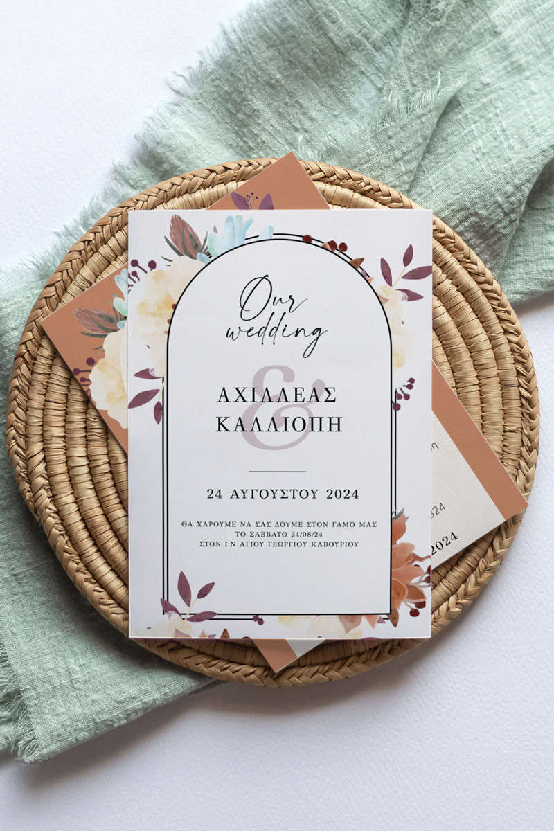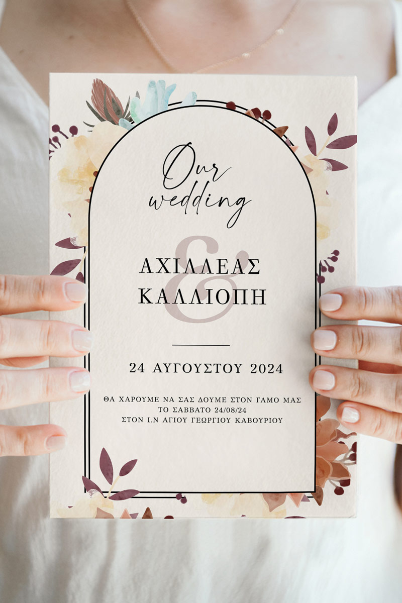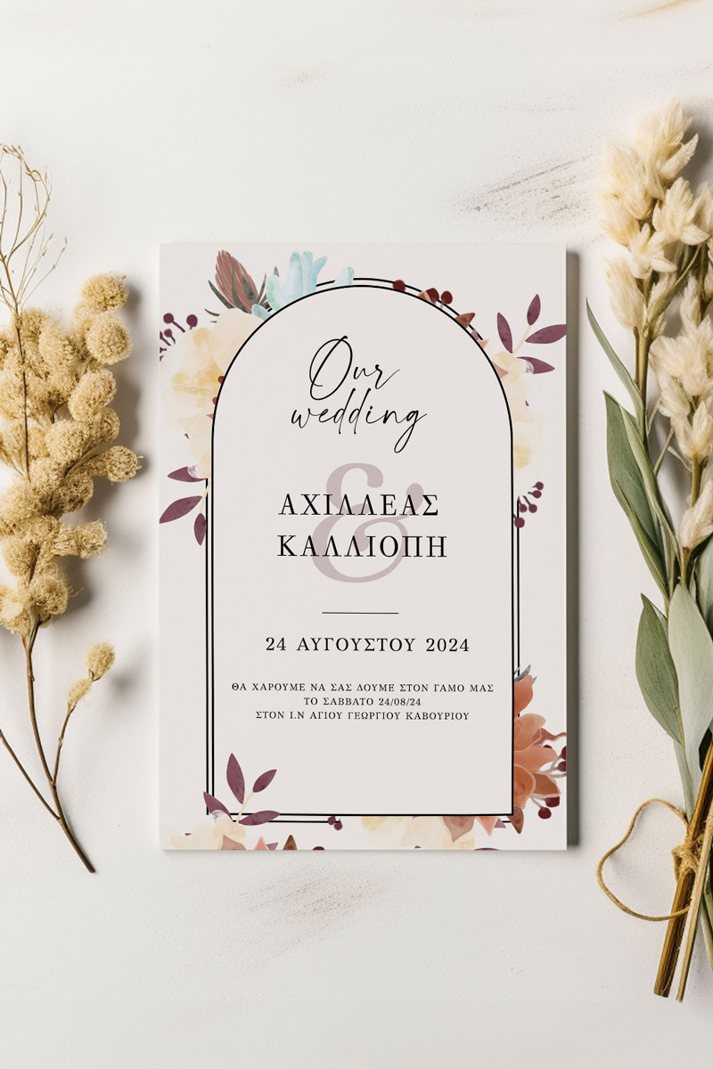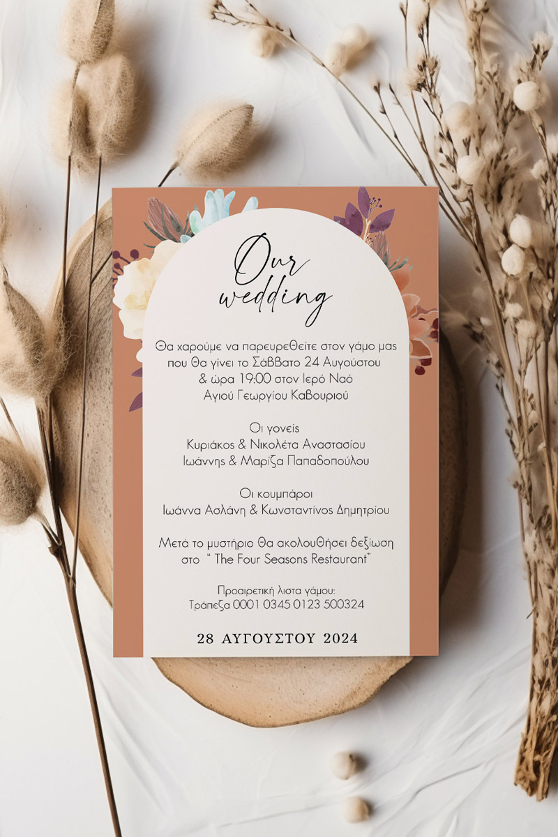 Αποκτήστε τα προσκλητήρια γάμου με σχέδιο Boho Κόκκινα Λουλούδια. Οι πελάτες μας τα ξεχωρίζουν για το υψηλής ποιότητας ιταλικό χαρτί και την εκτύπωση υψηλής ευκρίνειας Myikona High Definition. Διαθέσιμα σε διαφορετικές διαστάσεις.