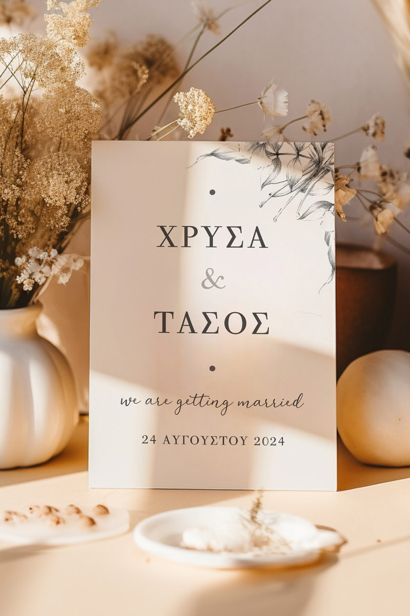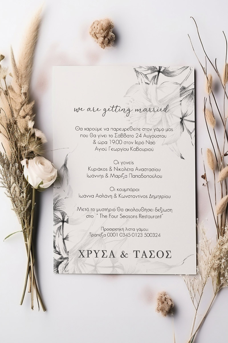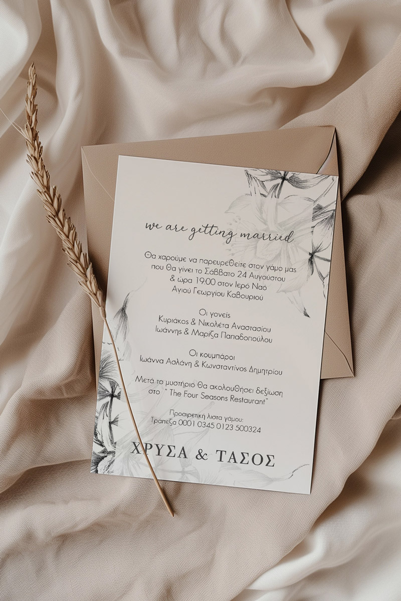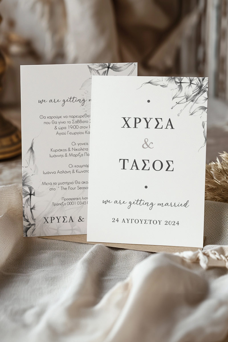 Προσκλητήρια Γάμου με σχέδιο Minimal Άνθη