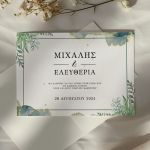 Αποκτήστε τα προσκλητήρια γάμου με σχέδιο Minimal Elegance. Οι πελάτες μας τα ξεχωρίζουν για το υψηλής ποιότητας ιταλικό χαρτί και την εκτύπωση υψηλής ευκρίνειας Myikona High Definition. Διαθέσιμα σε διαφορετικές διαστάσεις.