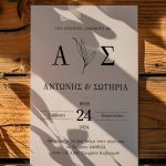 Αποκτήστε τα προσκλητήρια γάμου με σχέδιο Minimal Elegance. Οι πελάτες μας τα ξεχωρίζουν για το υψηλής ποιότητας ιταλικό χαρτί και την εκτύπωση υψηλής ευκρίνειας Myikona High Definition. Διαθέσιμα σε διαφορετικές διαστάσεις.