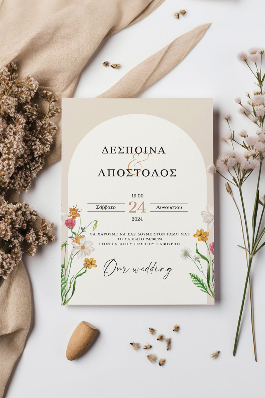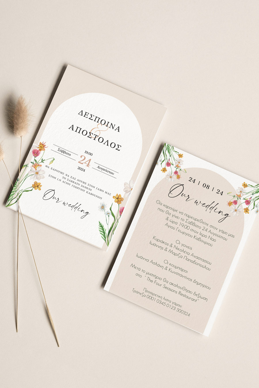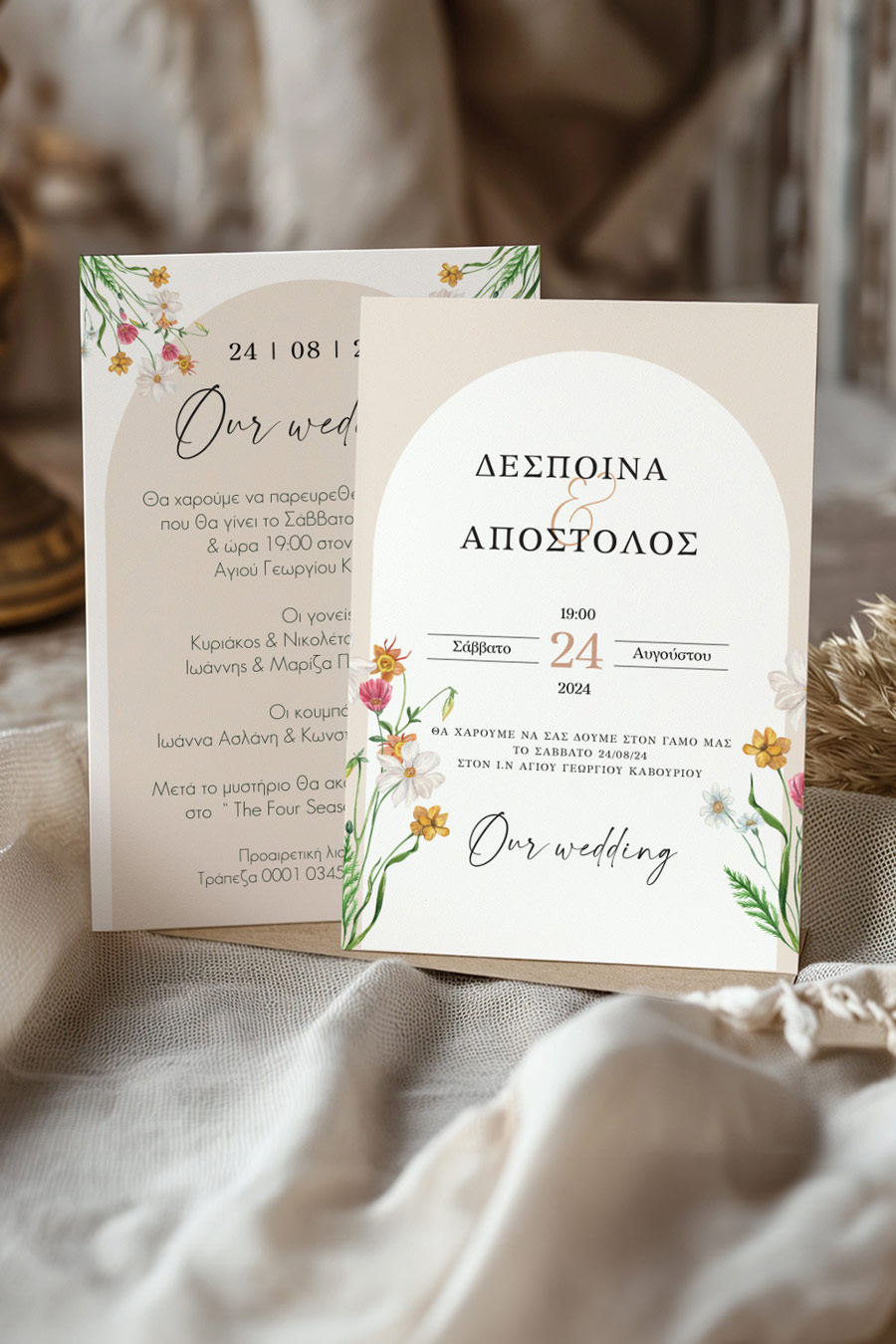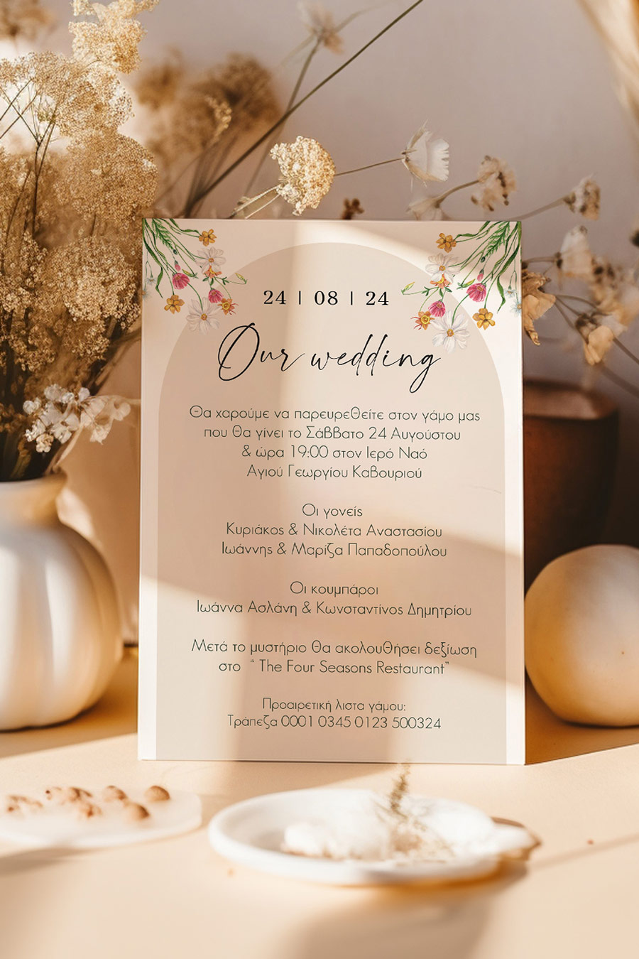 Αποκτήστε τα προσκλητήρια γάμου με σχέδιο Boho Κόκκινα Λουλούδια. Οι πελάτες μας τα ξεχωρίζουν για το υψηλής ποιότητας ιταλικό χαρτί και την εκτύπωση υψηλής ευκρίνειας Myikona High Definition. Διαθέσιμα σε διαφορετικές διαστάσεις.
