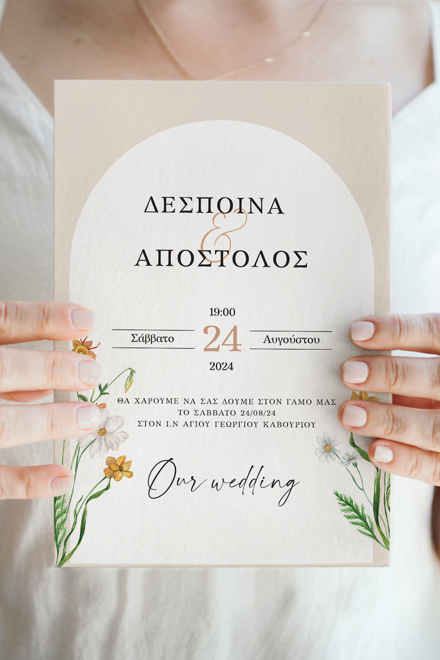 Αποκτήστε τα προσκλητήρια γάμου με σχέδιο Minimal Elegance. Οι πελάτες μας τα ξεχωρίζουν για το υψηλής ποιότητας ιταλικό χαρτί και την εκτύπωση υψηλής ευκρίνειας Myikona High Definition. Διαθέσιμα σε διαφορετικές διαστάσεις.