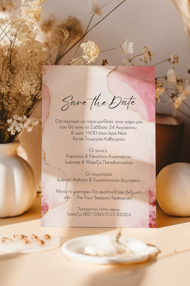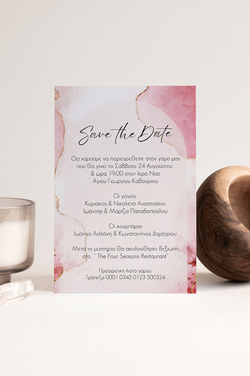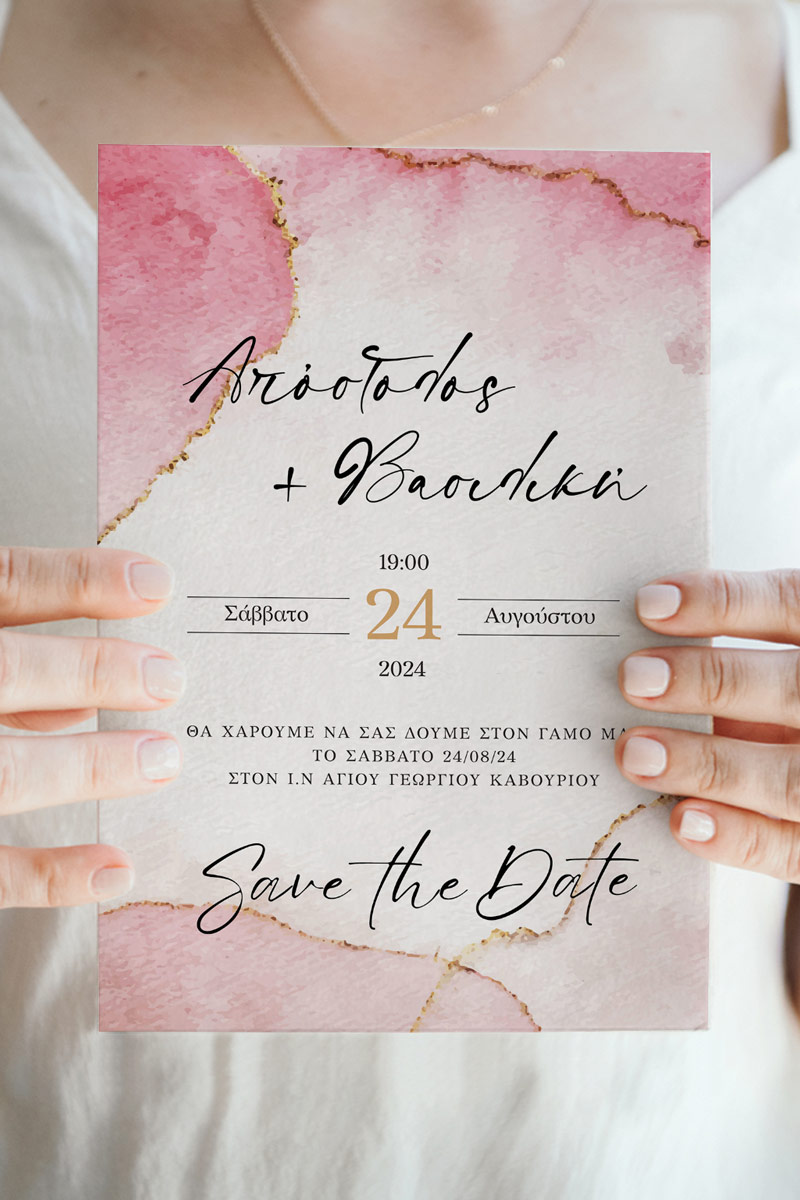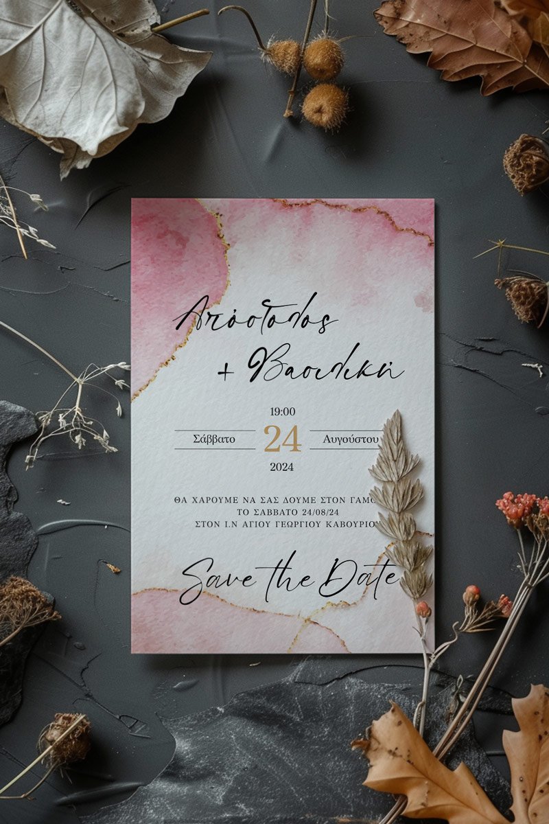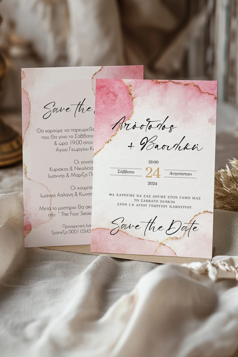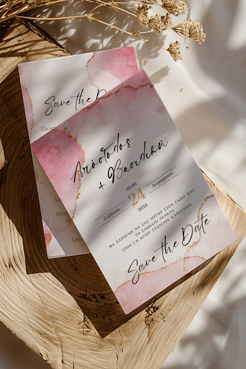 Προσκλητήρια Γάμου με σχέδιο Ροζ Μάρμαρο