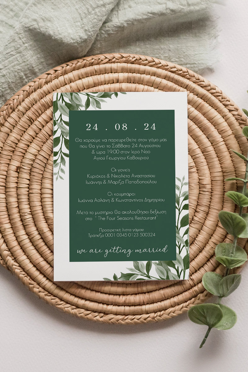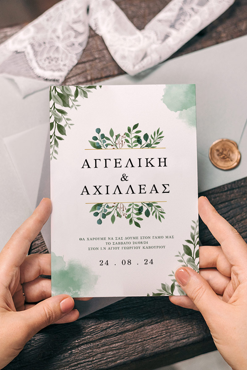 Αποκτήστε τα προσκλητήρια γάμου με σχέδιο Minimal Elegance. Οι πελάτες μας τα ξεχωρίζουν για το υψηλής ποιότητας ιταλικό χαρτί και την εκτύπωση υψηλής ευκρίνειας Myikona High Definition. Διαθέσιμα σε διαφορετικές διαστάσεις.