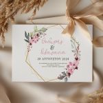 Δημιουργήστε ένα προσκλητήριο με τα στοιχεία σας και επιλέξτε ποσότητα 1 τεμαχίου, ώστε να το δημιουργήσουμε και να σας το αποστείλουμε πριν την τελική εκτύπωση με κόστος μόνο 9,95€.