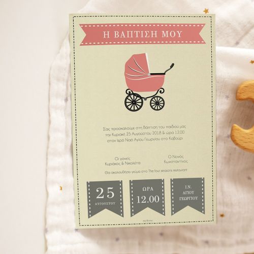 Η δημιουργία & η εκτύπωση των προσκλητηρίων της Βάπτισης του μωρού σας είναι διασκεδαστικότερη & ευκολότερη από ποτέ. Προσθέστε στα προσκλητήρια Βάπτισης του αγοριού ή του κοριτσιού σας, πρωτότυπα, vintage, μοντέρνα ή ρομαντικά, γραφικά και κείμενα. Σε λίγα λεπτά, μπορείτε να παραγγείλετε online, εύκολα και οικονομικά τις προσκλήσεις της Βάπτισης του παιδιού σας & σε ελάχιστες ημέρες να τις παραλάβετε στο χώρο σας.