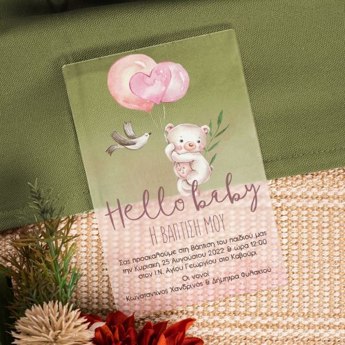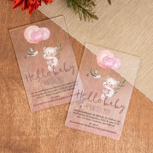 Προσκλητήρια Γάμου Βάπτισης με σχέδιο Vintage Ροζ