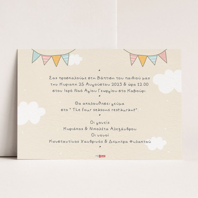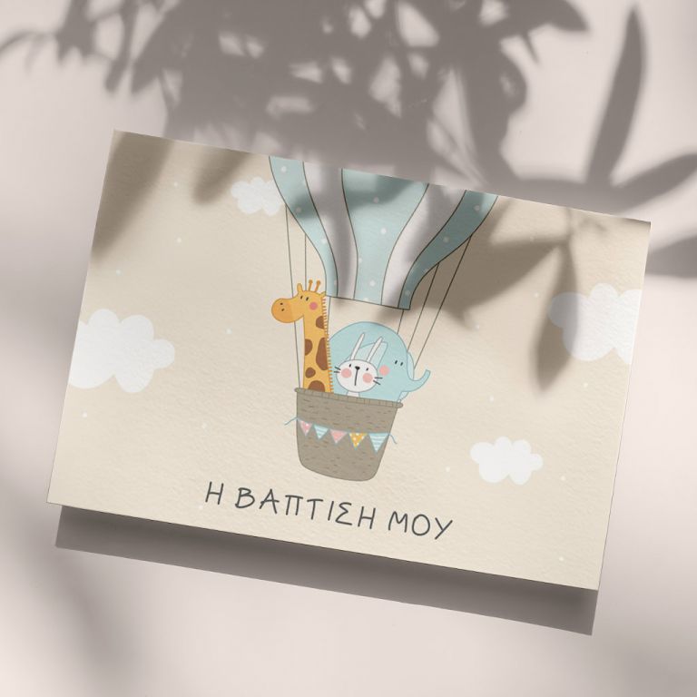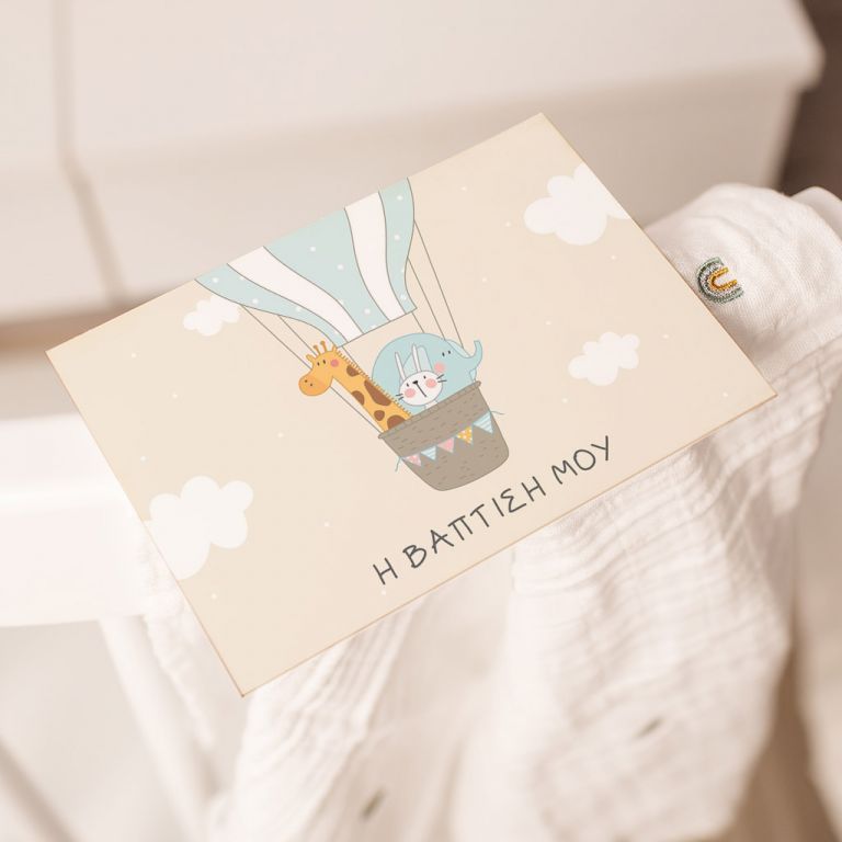 Κάθε λεπτομέρεια μετράει στην πιο όμορφη στιγμή της ζωής σας. Αυτό αντικατοπτρίζεται στα Προσκλητήρια Βάπτισης με σχέδιο Αρκουδάκι με Αερόστατο, τα οποία χρησιμοποιούν υψηλής ποιότητας ιταλικό χαρτί και Myikona High Definition εκτύπωση. Διαθέσιμα σε διαφορετικές διαστάσεις.