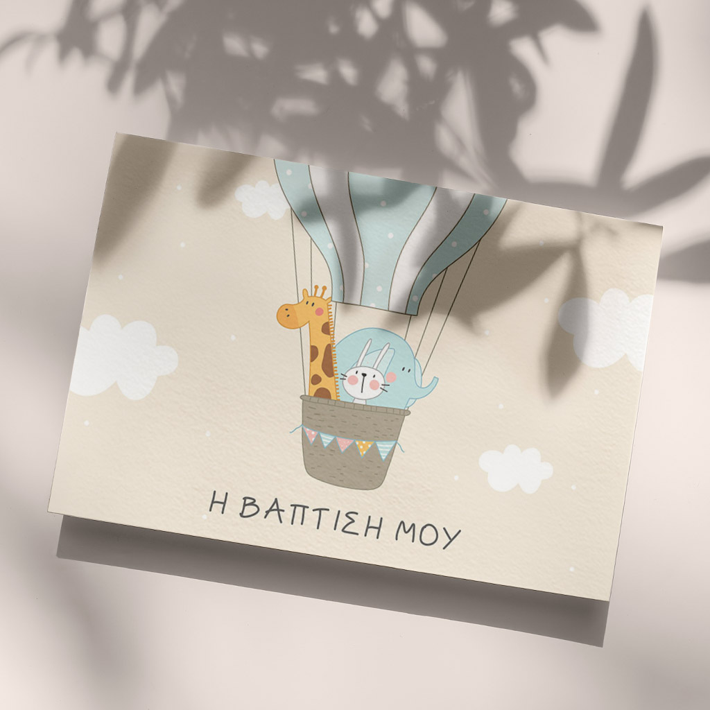 Κάθε λεπτομέρεια μετράει στην πιο όμορφη στιγμή της ζωής σας. Αυτό αντικατοπτρίζεται στα Προσκλητήρια Βάπτισης με σχέδιο Αρκουδάκι με Αερόστατο, τα οποία χρησιμοποιούν υψηλής ποιότητας ιταλικό χαρτί και Myikona High Definition εκτύπωση. Διαθέσιμα σε διαφορετικές διαστάσεις.