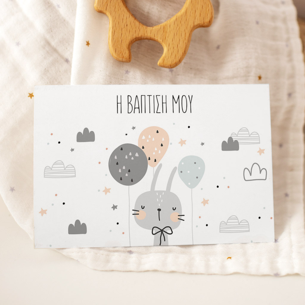 Κάθε λεπτομέρεια μετράει στην πιο όμορφη στιγμή της ζωής σας. Αυτό αντικατοπτρίζεται στα Προσκλητήρια Βάπτισης με σχέδιο Αρκουδάκι με Μπλε Μπαλόνια, τα οποία χρησιμοποιούν υψηλής ποιότητας ιταλικό χαρτί και Myikona High Definition εκτύπωση. Διαθέσιμα σε διαφορετικές διαστάσεις.
