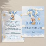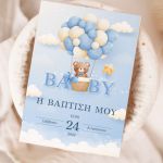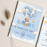 Τα προσκλητήρια βάπτισης με σχέδιο Αρκουδάκι σε Γαλάζιο Ουρανό αντανακλούν το πάθος μας για κομψότητα και τη δέσμευσή μας για απαράμιλλη ποιότητα.