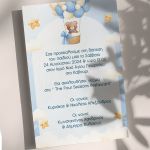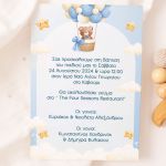 Προσκλητήρια Βάπτισης με σχέδιο Αρκουδάκι σε Γαλάζιο Ουρανό
