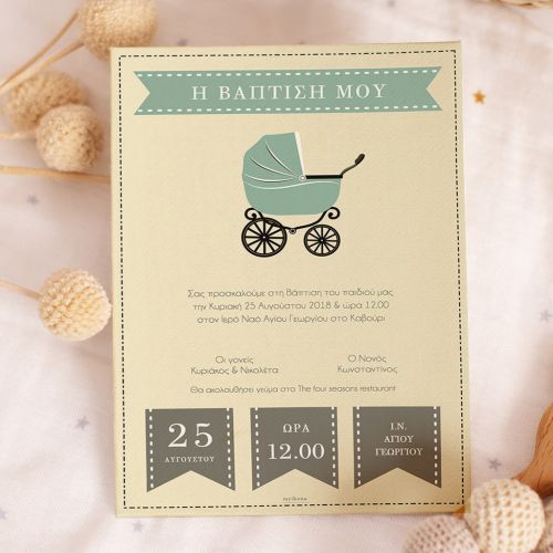 Η δημιουργία & η εκτύπωση των προσκλητηρίων της Βάπτισης του μωρού σας είναι διασκεδαστικότερη & ευκολότερη από ποτέ. Προσθέστε στα προσκλητήρια Βάπτισης του αγοριού ή του κοριτσιού σας, πρωτότυπα, vintage, μοντέρνα ή ρομαντικά, γραφικά και κείμενα. Σε λίγα λεπτά, μπορείτε να παραγγείλετε online, εύκολα και οικονομικά τις προσκλήσεις της Βάπτισης του παιδιού σας & σε ελάχιστες ημέρες να τις παραλάβετε στο χώρο σας.
