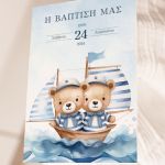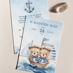 Προσκλητήρια Βάπτισης με σχέδιο Δίδυμα Αρκουδάκια Ναύτες