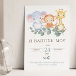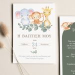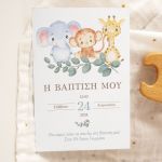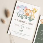 Κάθε λεπτομέρεια μετράει στην πιο όμορφη στιγμή της ζωής σας. Αυτό αντικατοπτρίζεται στα Προσκλητήρια Βάπτισης με σχέδιο Ζωάκια στη Ζούγκλα, τα οποία χρησιμοποιούν υψηλής ποιότητας ιταλικό χαρτί και Myikona High Definition εκτύπωση. Διαθέσιμα σε διαφορετικές διαστάσεις.