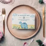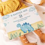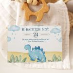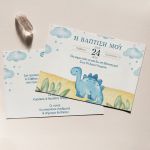 Κάθε λεπτομέρεια μετράει στην πιο όμορφη στιγμή της ζωής σας. Αυτό αντικατοπτρίζεται στα Προσκλητήρια Βάπτισης με σχέδιο Πράσινος Δεινόσαυρος, τα οποία χρησιμοποιούν υψηλής ποιότητας ιταλικό χαρτί και Myikona High Definition εκτύπωση. Διαθέσιμα σε διαφορετικές διαστάσεις.