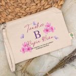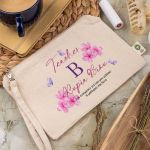 Προσωποποιημένο Εκρού Τσαντάκι & Νεσεσέρ Καλλυντικών Λουλούδια με Πεταλούδες