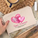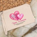 Προσωποποιημένο Εκρού Τσαντάκι & Νεσεσέρ Καλλυντικών Ροζ Καρδιές