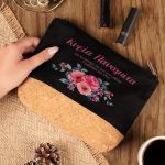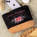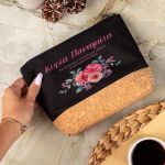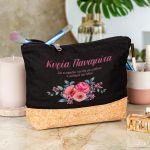 Προσωποποιημένο Μαύρο Τσαντάκι & Νεσεσέρ Καλλυντικών με φελλό Κόκκινα Λουλούδια
