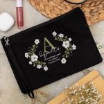 Προσωποποιημένο Μαύρο Τσαντάκι & Νεσεσέρ Καλλυντικών Γαλάζια Λουλούδια